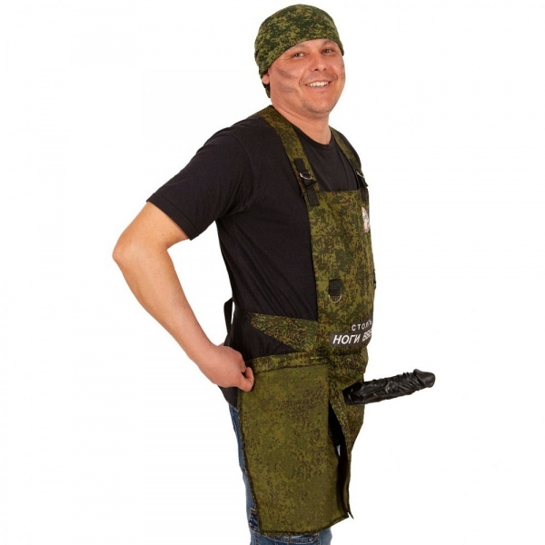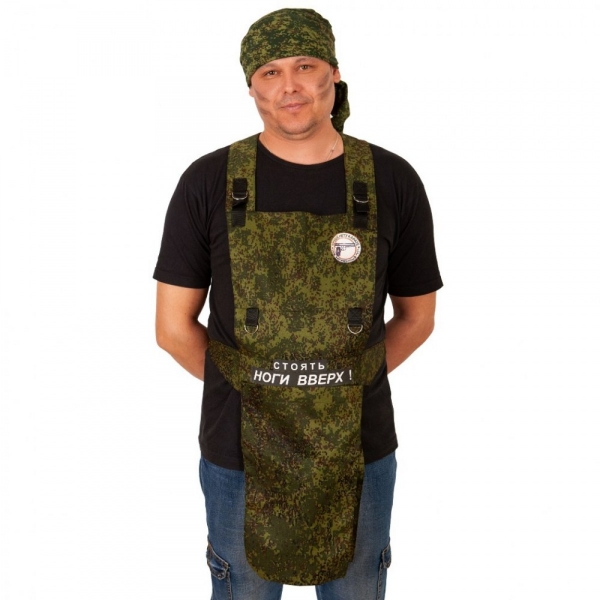 При открытии ткани правой рукой - фаллос поднимается. При закрытии двойной ткани обратно на липучку, фаллос опускается. Регулируется по росту- лямки на липучке,по объему талии-на поясе застежкой фастекс. Размер передника 70 x 50 см. Комплектация: Фартук, Фаллос, Бандана. Материал - полиэстер. Размер фаллоса 20 х 5 см Комплектация: Фартук, Фаллос, Бандана