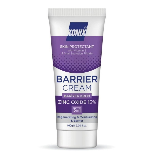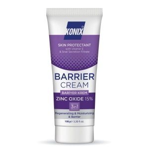 Крем-барьер KONIX помогает предотвратить потерю влаги, создавая на коже защитный слой. Он помогает успокоить раздражение кожи, вызванное сухостью, благодаря барьерному эффекту оксида цинка и пантенола. Экстракт улитки и витамин E восстанавливают кожу, возвращают ей эластичность и мягкость. Белки и витамины в составе питают кожу и делают её более гладкой и ухоженной. Подходит для любого типа кожи, включая чувствительную. Способ применения: Крем-барьер можно наносить 1 или 2 раза в день по мере необходимости. Перед применением убедитесь, что кожа достаточно чистая и сухая. Состав: Vaseline, Aqua, Zinc Oxide, Ozokerite, Hydrogenated Castor Oil, Glyceryl Isostearate, Polyglyceryl-3 Oleate, Glycerin, Dicaprylyl Carbonate, Panthenol, Dimethicone, Sorbitan Caprylate, Propanediol, Benzoic Acid, Snail Secretion Filtrate, Tocopheryl Acetate, Butylene Glycol, Lysine, Histidine, Arginine, Aspartic Acid, Threonine, Serine Glutamic acid, Proline, Glycine, Alanine, Valine, Isoleucine, Leucine, Tyrosine, Phenylalanine.